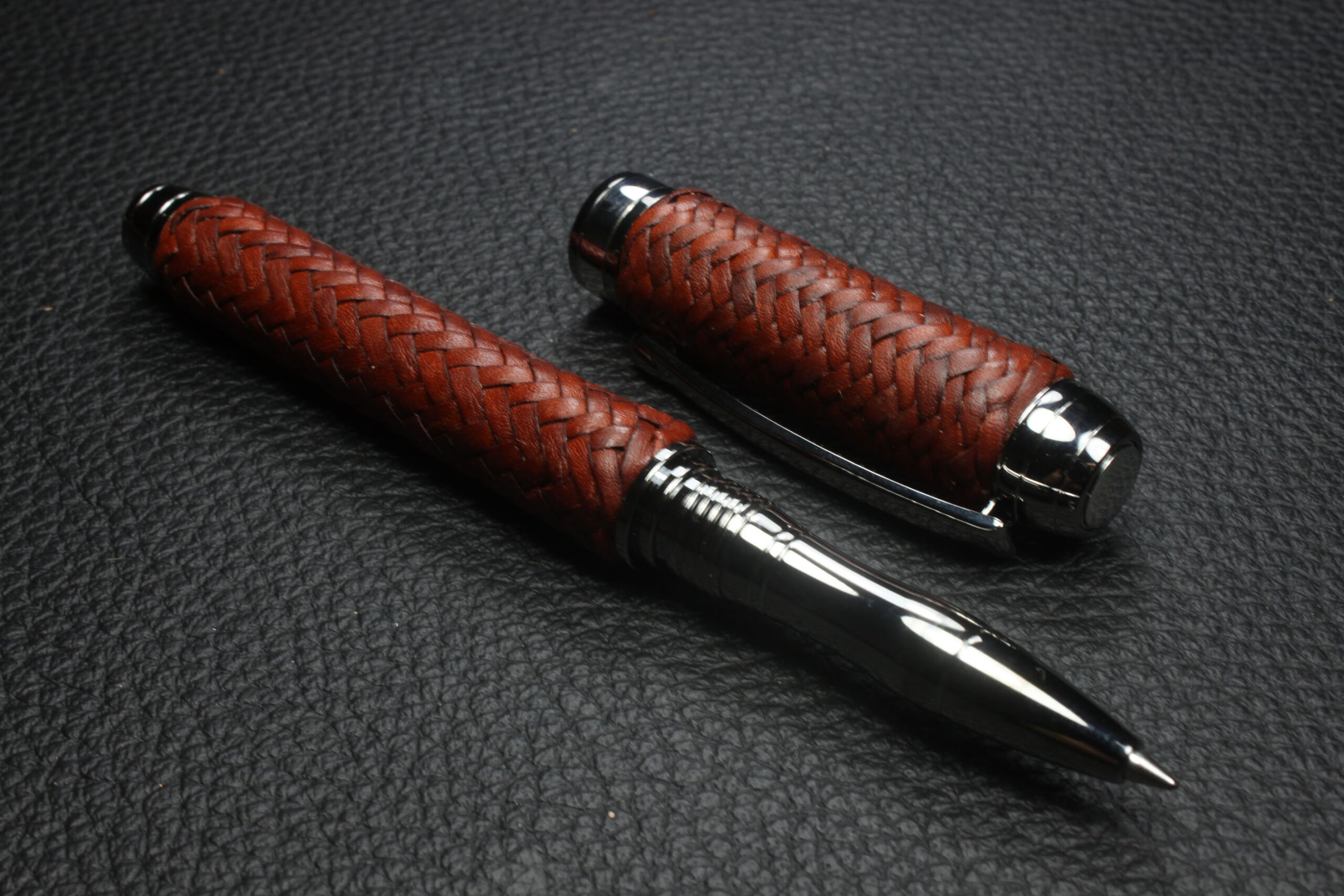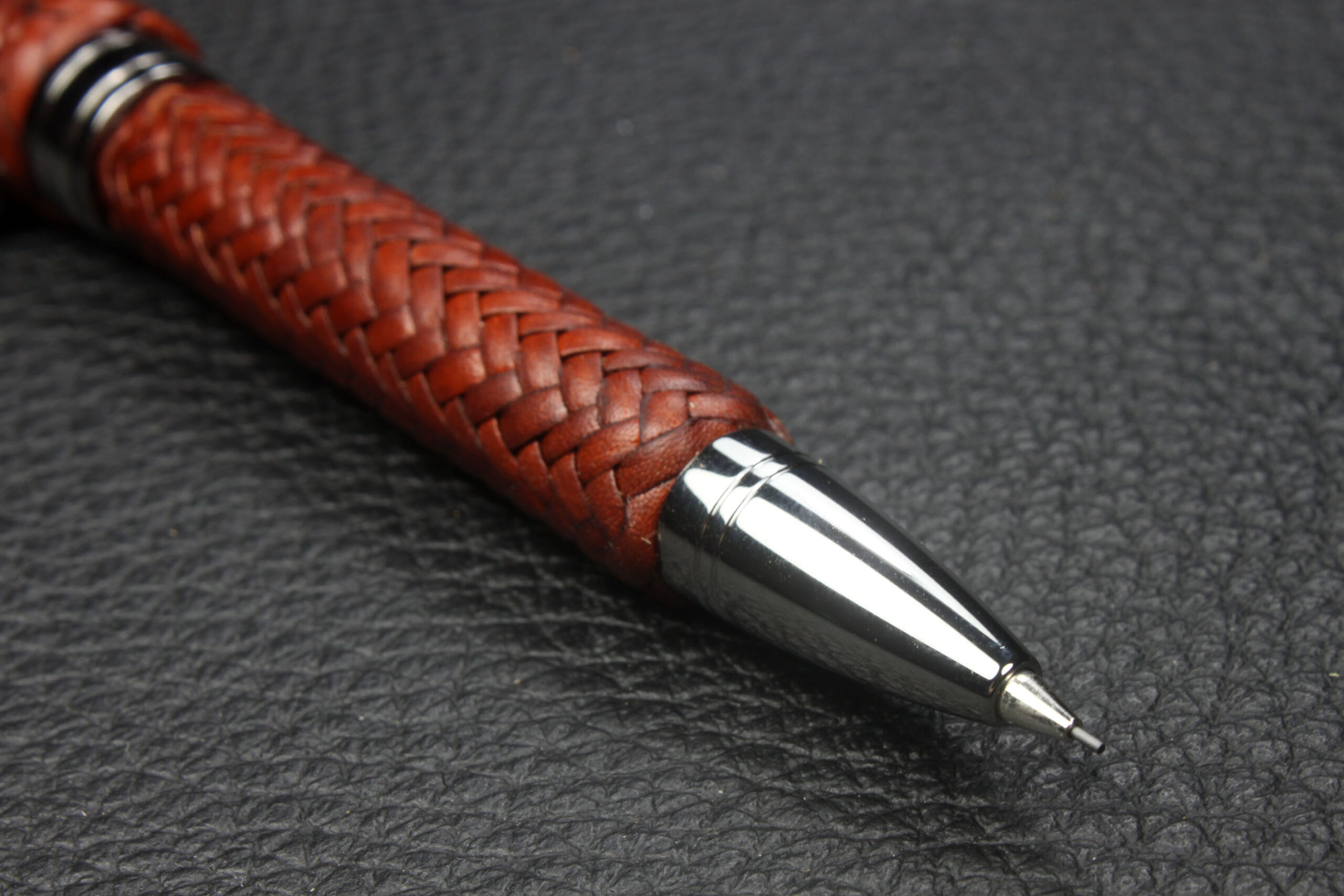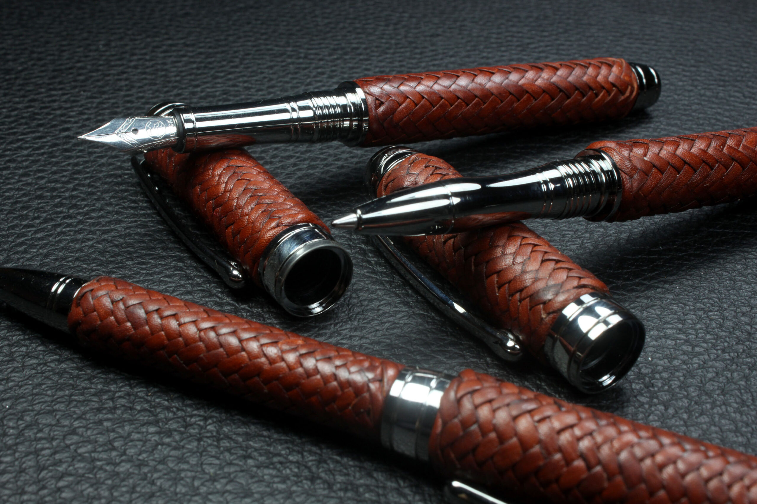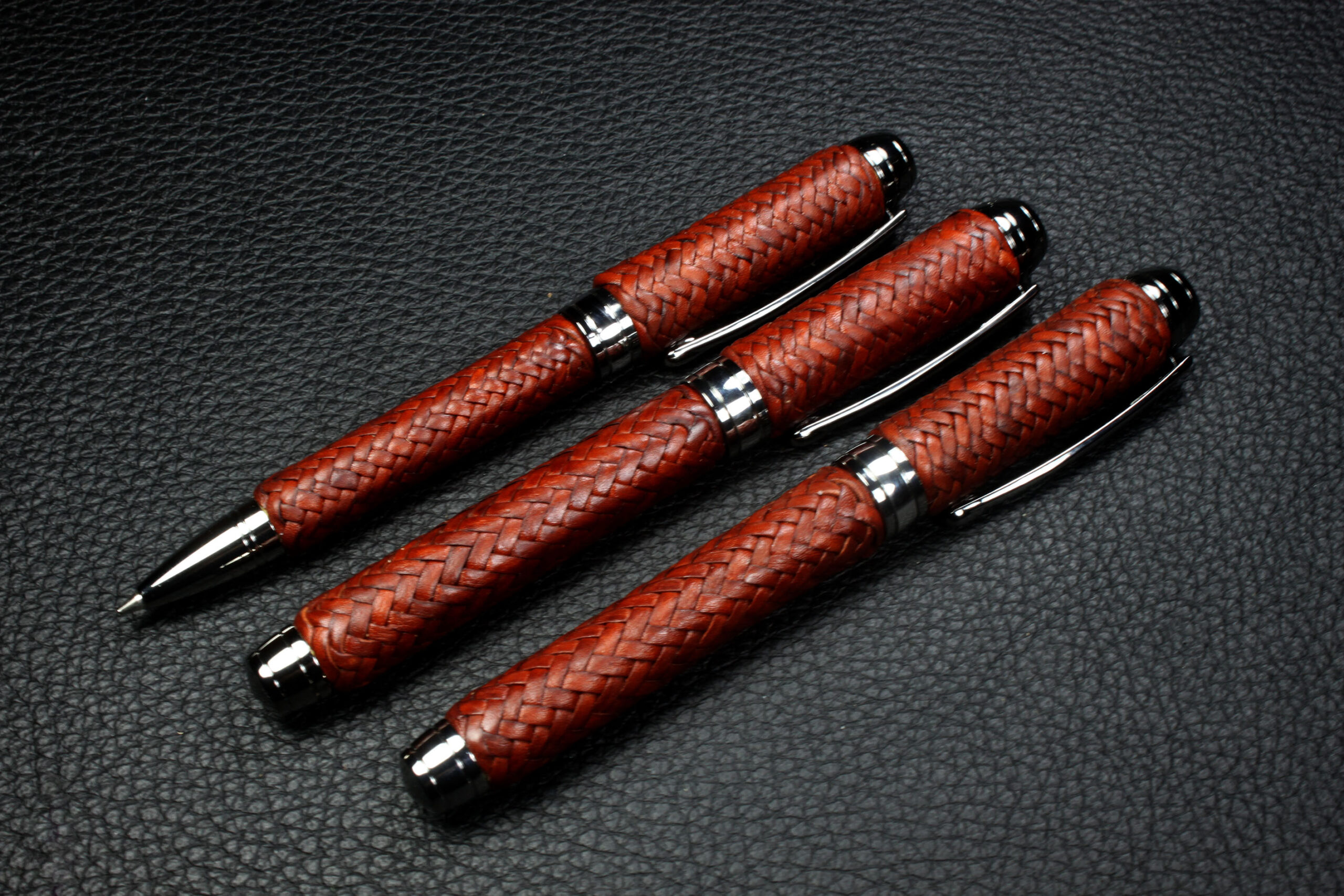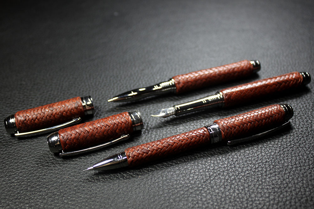 Cada pieza es única y artesanal, reflejando la calidad de la marroquinería tradicional. Todas las piezas del conjunto se venden por separado, permitiendo al cliente elegir individualmente entre bolígrafo roller, pluma estilográfica o portaminas según sus preferencias. Este set es ideal como regalo premium o para quienes valoran objetos de escritura con diseño y artesanía excepcionales.