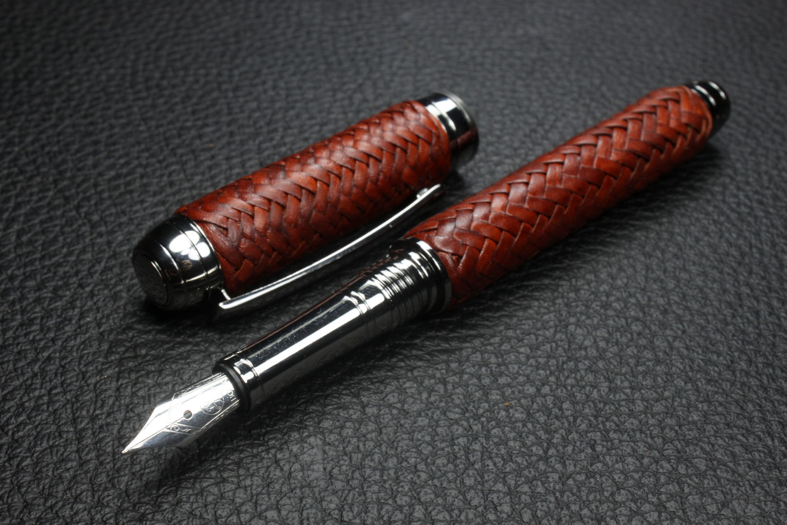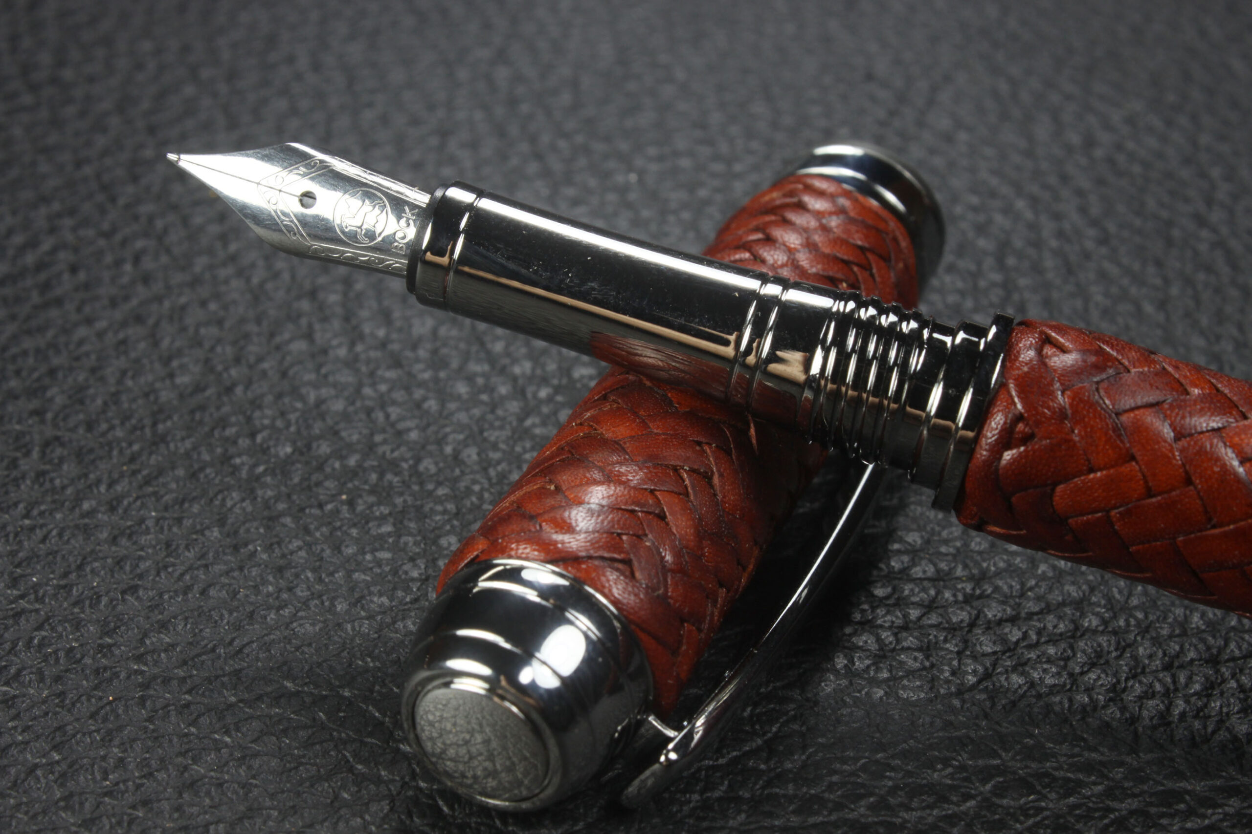 Cada pieza del conjunto Mistral —bolígrafo roller, pluma estilográfica y portaminas— está elaborada en piel de canguro de alta calidad, cuidadosamente seleccionada para ofrecer suavidad, durabilidad y resistencia. El cuero se trabaja artesanalmente, creando un diseño elegante, único y ergonómico que aporta confort y estilo a la escritura.
